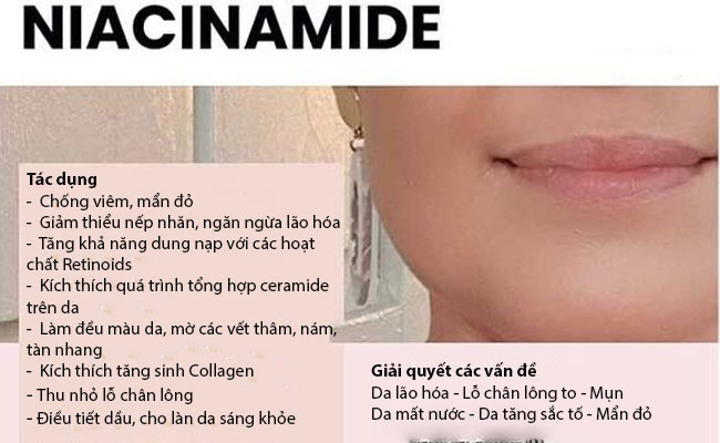 Khẳng định, Niacinamide là một loại vitamin có lợi trong thực phẩm và được nạp vào cơ thể con người bằng nhiều cách như ăn uống hoặc thoa trực tiếp lên da. Niacinamide thuộc nhóm vitamin B, phức hợp vitamin B3. Trong sản phẩm chăm sóc da và mỹ phẩm, nó được sử dụng để loại bỏ vấn đề da liên quan đến mụn và lỗ chân lông.