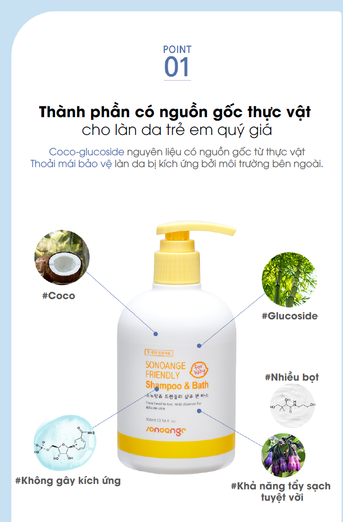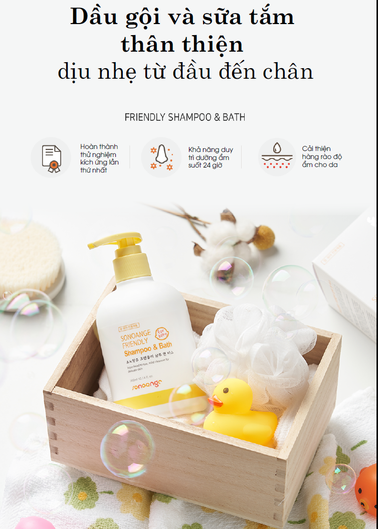 Sữa tắm gội dịu nhẹ cho bé 2 trong 1 FRIENDLY SHAMPOO&BATH 300ml